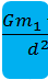 The force of gravity (F) between two objects depends on their masses (m1 and m2) and the distance (d) between them.